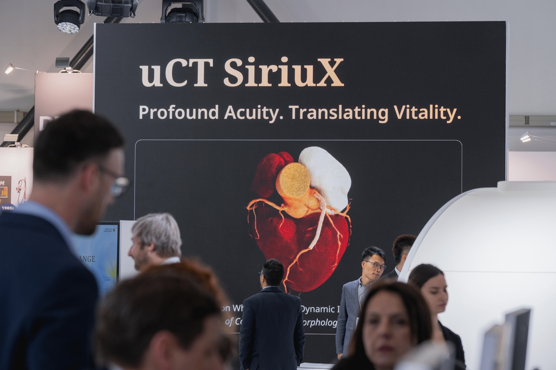 In CT, United Imaging highlighted the uCT SiriuX (Product under development. Not CE-marked. Not available for sale in the EU. Future availability cannot be guaranteed), an ultra-high-resolution CT system designed for next-generation dynamic imaging. The system features a proprietary twin-ring gantry integrating dual-wide (16 cm) Ultrix detectors and two liquid-metal-bearing X-ray tubes. This architecture enables ultra-high-resolution 4D whole-heart dynamic imaging as well as synchronized whole-organ dynamic imaging. In aortic valve assessment, for example, uCT SiriuX enables intuitive 3D dynamic visualization prior to TAVR procedures while minimizing motion and metal artifacts, with spatial resolution reaching up to 0.17 mm. This level of detail improves visualization of bioprosthetic valves and may support earlier detection of potential post-TAVR complications.
