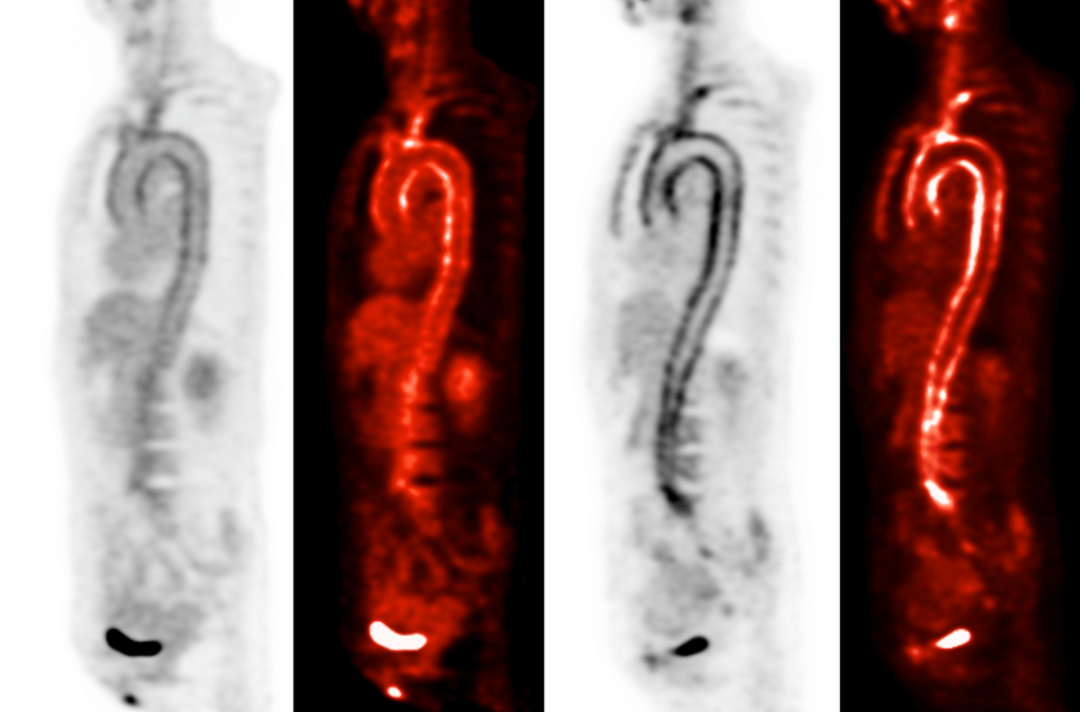 In the PET/CT images, wall thickening with increased glucose metabolism occurred in several parts of the body (bilateral internal carotid artery, common carotid artery, brachiocephalic trunk, bilateral subclavian and axillary arteries, thoracic aorta, abdominal aorta, bilateral common iliac artery, internal iliac artery, external iliac artery and femoral artery), which was considered to be caused by inflammatory changes. Combined with the patient's medical history, clinical symptoms, examination and imaging findings, she was diagnosed with T.A. After standardized anti-inflammation treatment, her body temperature dropped and her condition improved.
