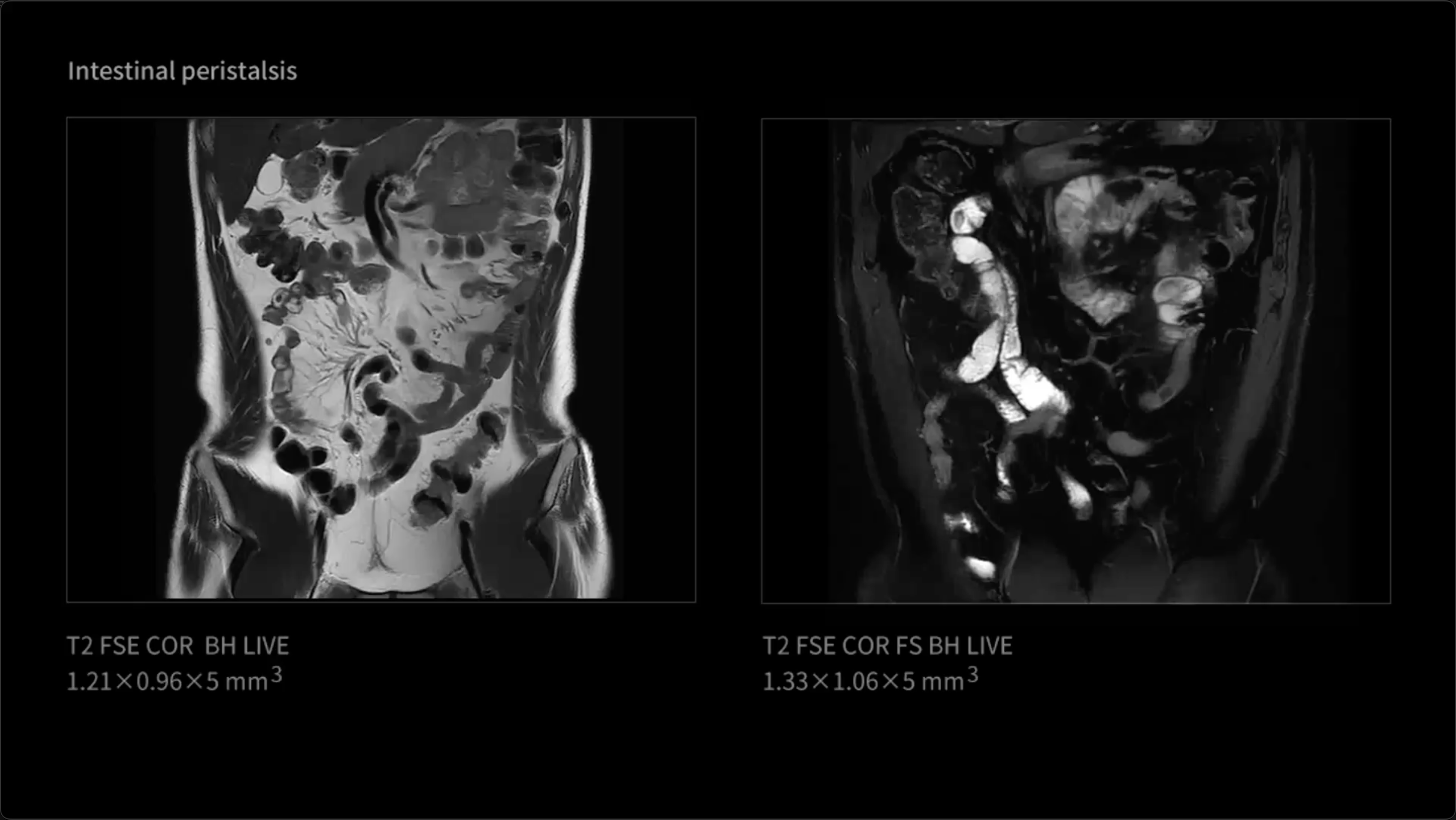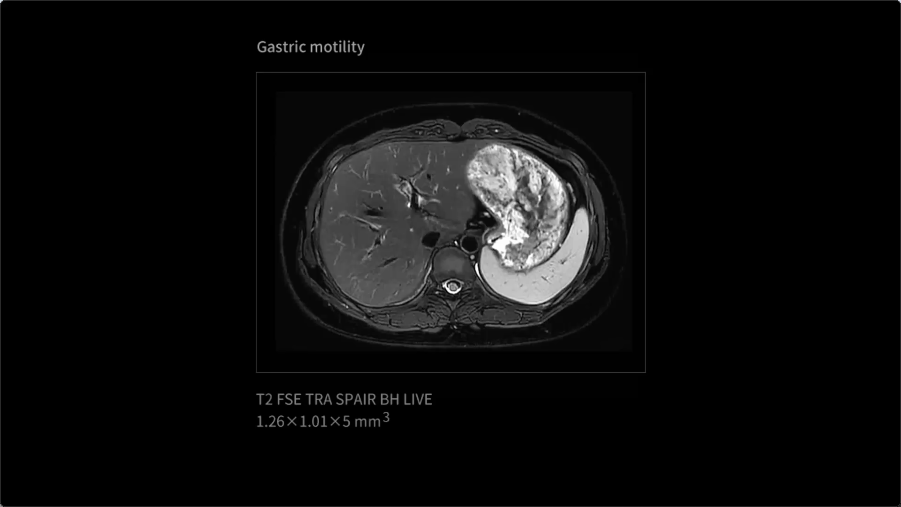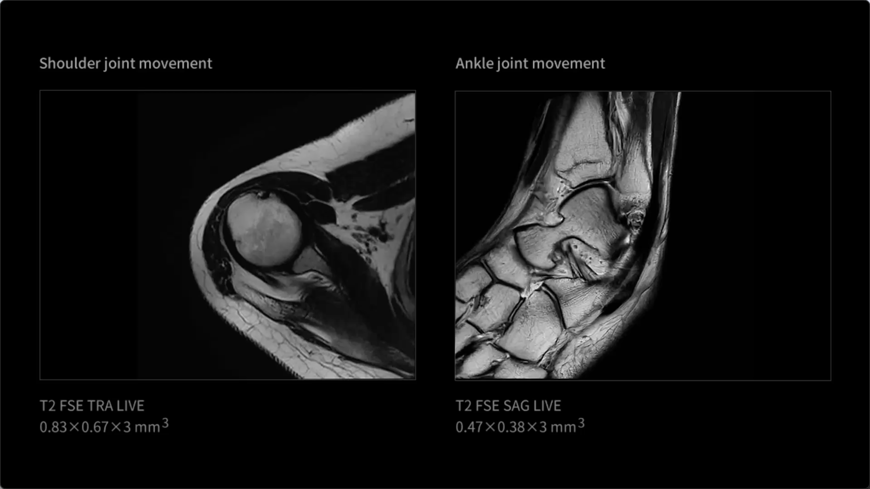 The 70-cm wide-bore MR, driven by an advanced gradient power amplifier with a power output of 3.5 MW, achieves a gradient strength of 100 mT/m @ 200 T/m/s for the first time. This allows for a large aperture and ultra-high-speed shutter with the capability of capturing continuous movements.