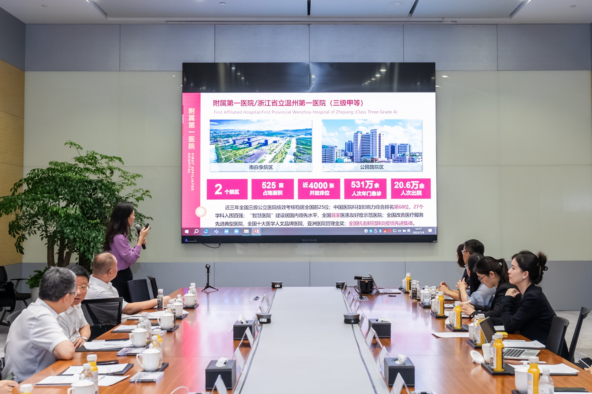 2023年7月4日,温州医科大学领导团队赴联影医疗总部考察及交流,双方确定多维度合作方向,通过共享教学资源、联合培养紧缺人才、创建教学基地、开设讲座论坛、拓展就业岗位等举措,共探放疗人才培养的新高度。温州医科大学教务处处长朱雪波表示,温州医科大学与联影医疗的合作将是对教育强国和科技强国非常好的验证。