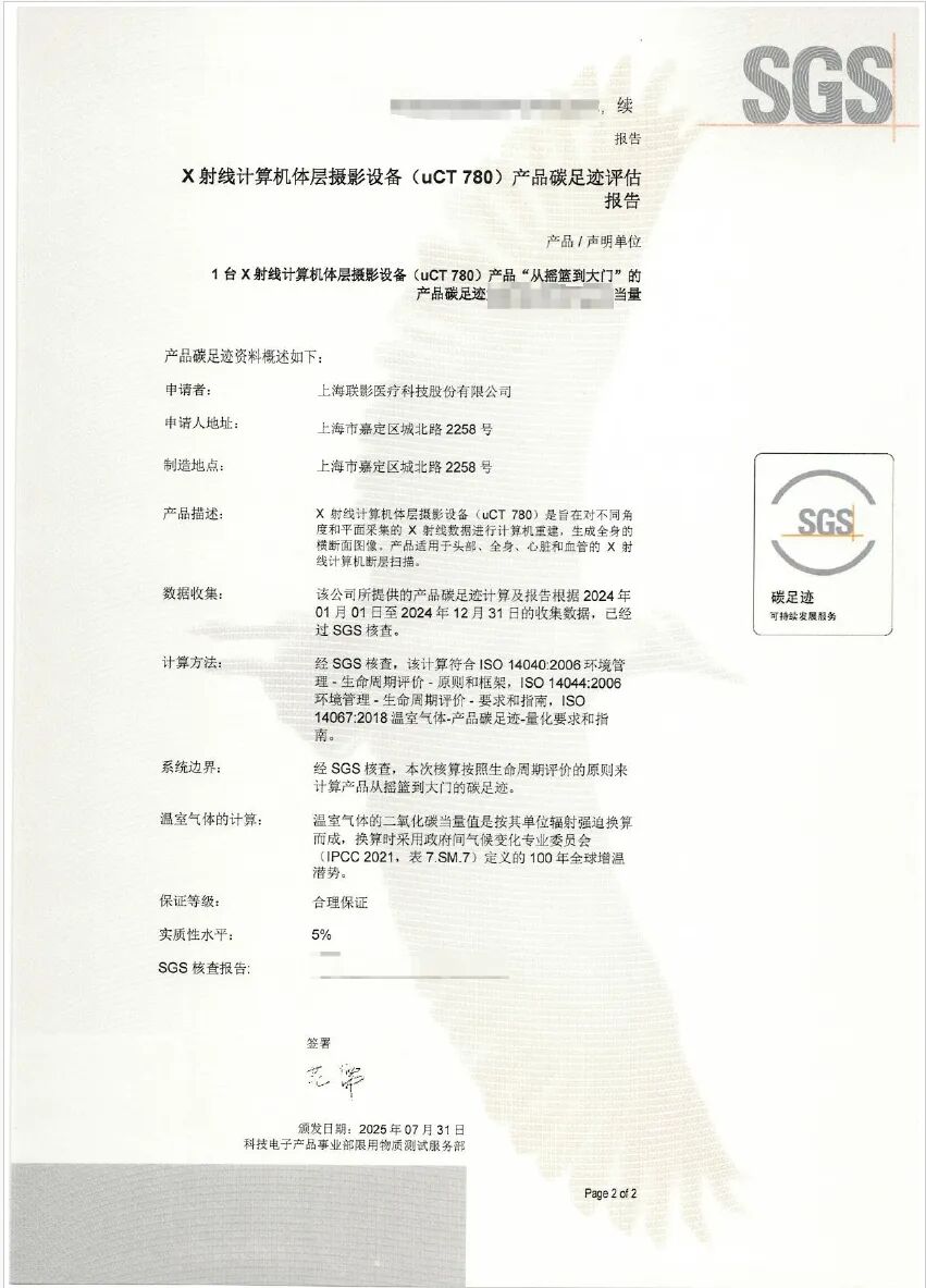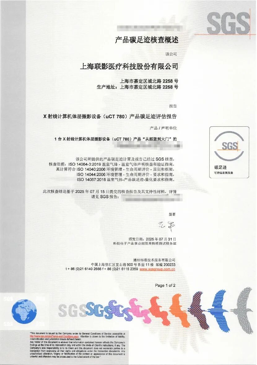 7月31日,联影医疗自主研发的uCT 780 X射线计算机断层成像设备成功通过ISO 14067产品碳足迹核查,成为中国大型医疗设备行业首个通过该项国际权威认证的CT产品。这一突破标志着联影医疗在产品全生命周期碳管理与绿色低碳转型方面实现关键跨越。