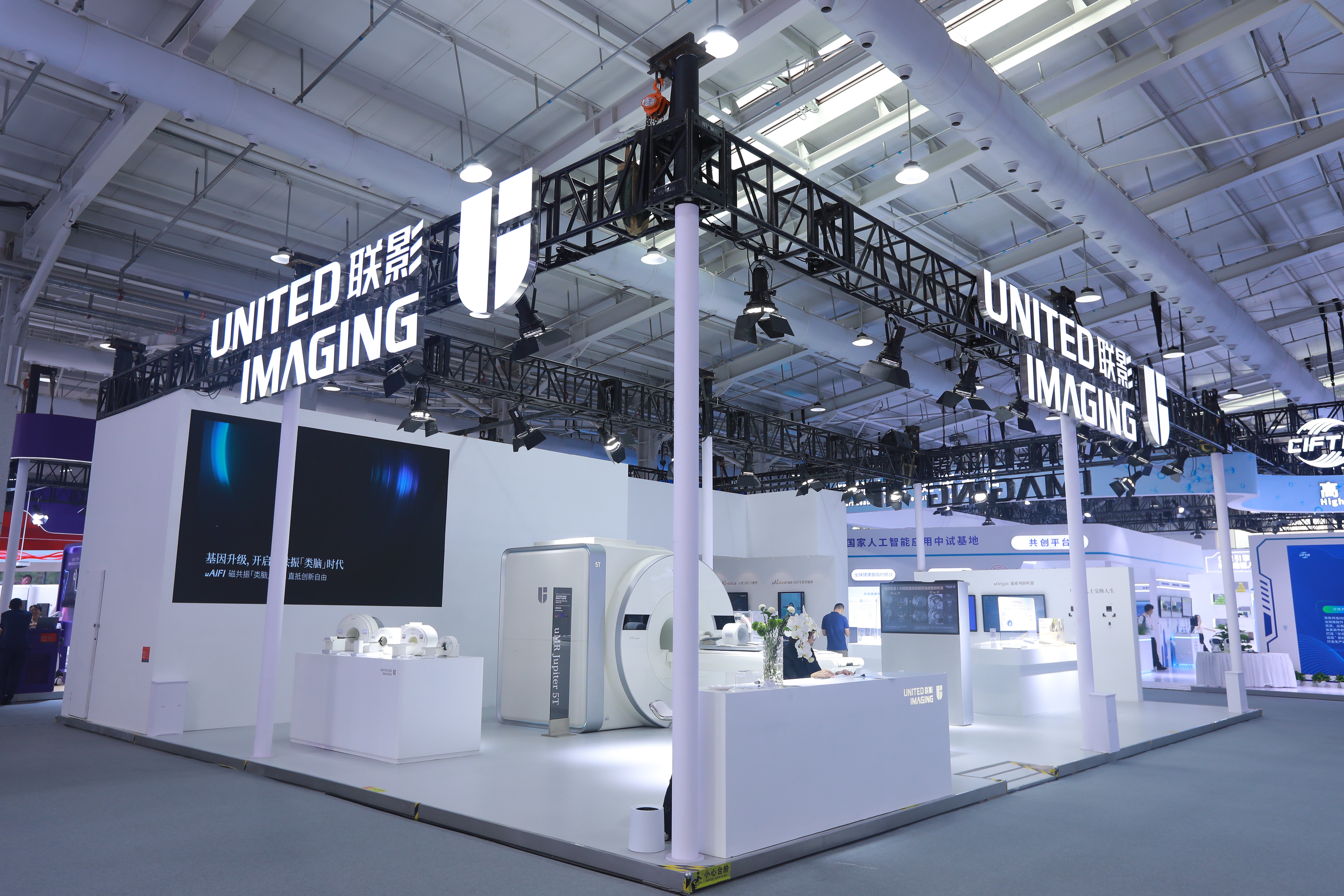 14年来,联影集团专注精准诊疗业务,已搭建覆盖预防-诊断-治疗-康复的生态平台,推出一系列首创医疗装备。展台现场,由集团子公司联影医疗自主研发的世界首创全身临床超高场5T磁共振uMR Jupiter吸引了全场目光。uMR Jupiter是“十三五”国家重点研发计划“数字诊疗装备研发”重点专项的成果,它首次突破了超高场磁共振局限于脑部成像的限制,实现超高场全身临床成像,还打破了3.0T作为全身临床磁共振成像最高场强长达20余年的记录。在神经系统成像方面,uMR Jupiter更是比肩更高场装备,可为脑小血管疾病与退行性病变提供更多诊断信息。