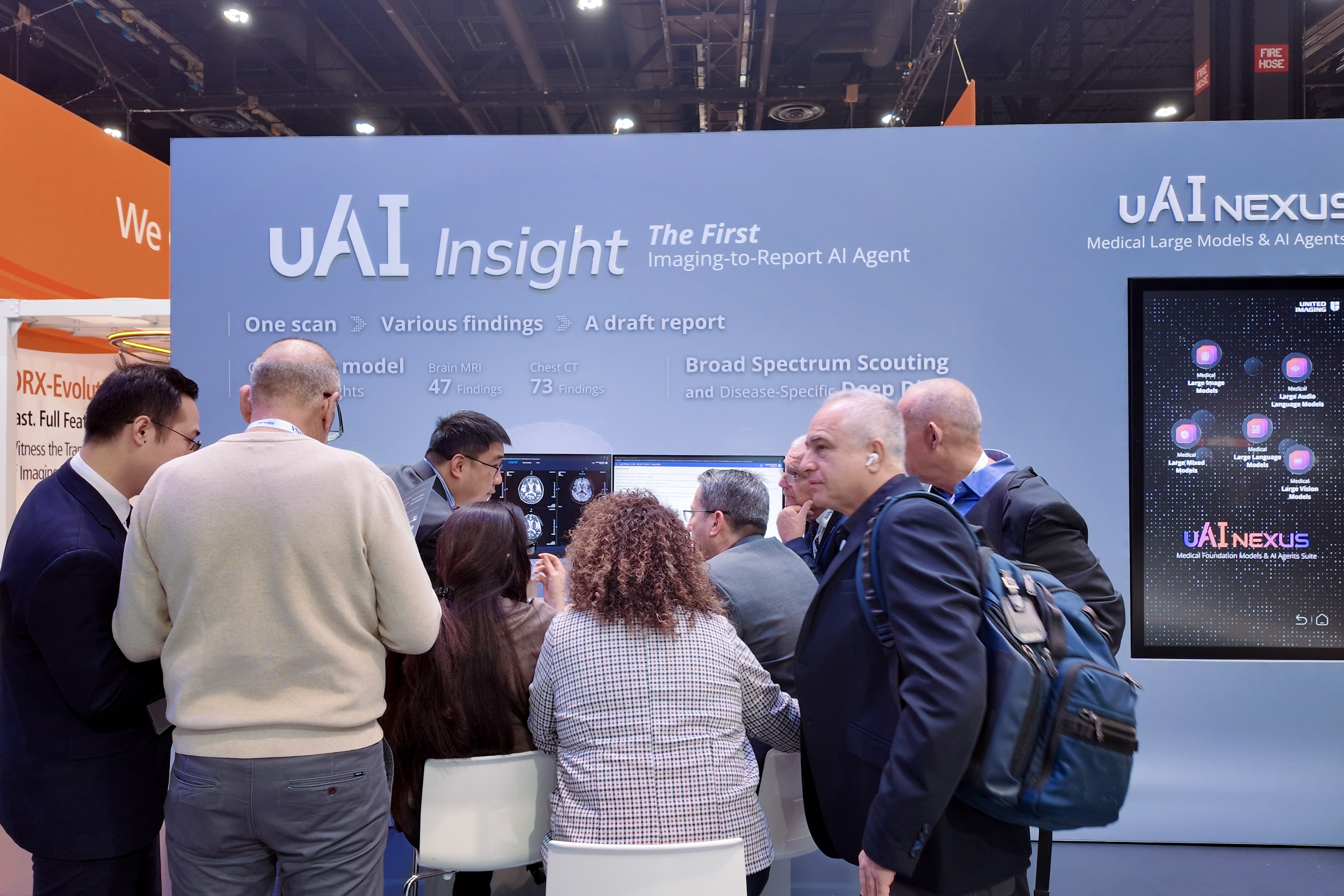 在本届 RSNA 上,联影集团子公司联影智能首次面向海外市场展出全球首创的一扫多查智能体。该智能体不仅能支持胸部 CT 、脑部 MR 等部位“一扫多查”,更开创性实现多模态阅片系统与智能报告生成引擎的闭环整合,可自动生成媲美初年资医生的诊断报告,推动传统影像阅片从“ 1(报告医生)+ 1(审核医生)”模式升级为“ AI+1 (审核医生)”协作模式,为临床工作赋能增效、解放生产力,让医生专注到高价值工作。